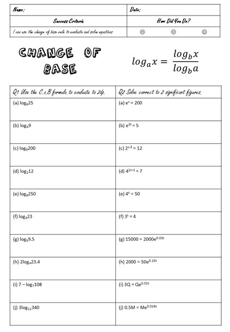 Change of base formula for logarithms. Log 5 4 ê å ü ç ø ô æ 1 û û û û. Plus each one comes with an answer key.
