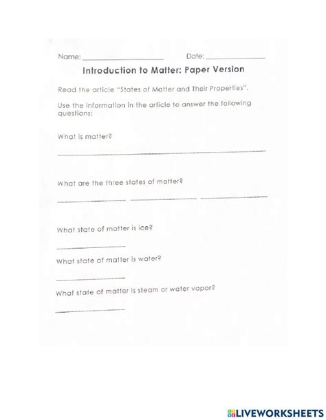 Web Matter Worksheets Matter Is The Stuff That All Things Are Made Of, And Matter Exists In Different States With Very Different Properties.